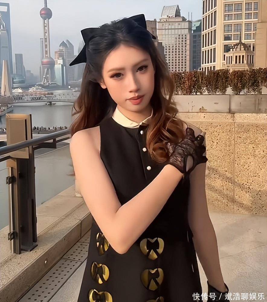 近日动态这段视频是在户外拍的,背景看起来是在上海。她穿得挺清凉的,可能是为了拍视频能更吸引人,所以只搭了一件黑色无袖连衣裙。她的裙子上点缀着好几串黄色的心形镂空图案,中央还系着一个黑色蝴蝶结,挺有创意的设计感。